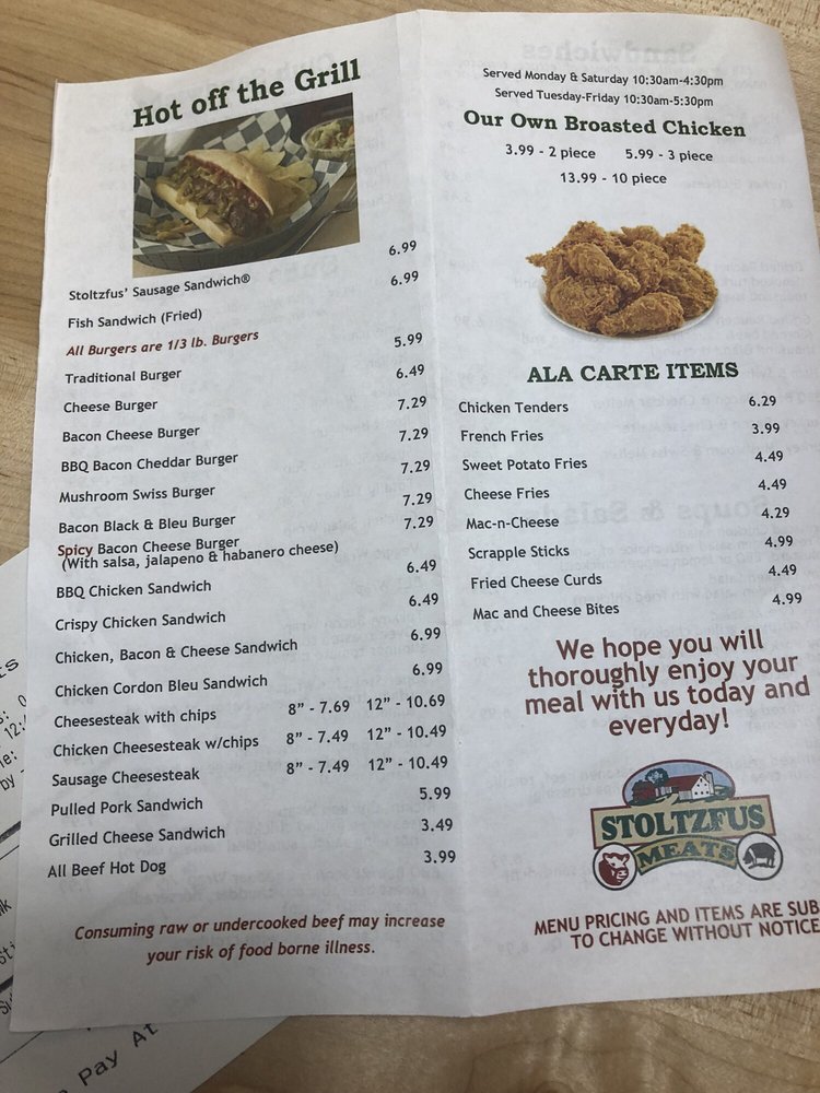 Introducing the menu at Stoltzfus Meats, located in the heart of Intercourse, PA, is akin to stepping into a culinary treasure trove. Renowned for its mouthwatering offerings, this destination showcases the best of American comfort food. Customers rave about the fried chicken, a must-try according to Deanna A., while Rhea A. highlights the incredible cheese selection, including the spicy scorpion cheese and fresh cheese curds.